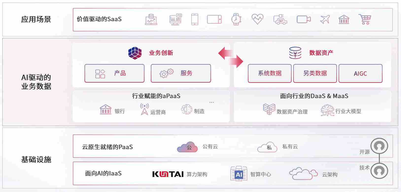 数字时代,,,,围绕企业数字化转型的关键要素,,,,NG大舞台数码开创性的提出数云融合战略和技术体系框架,,,,着力在云原生、、数字原生、、AI原生和信创产业上架构产品和服务能力,,,为处在不同数字化转型阶段的快消零售、、、汽车、、、、金融、、、医疗、、政企、、教育、、、运营商等行业客户提供泛在的敏捷IT能力和融合的数据驱动能力,,,构建跨界融合创新的数字业务场景和新业务模式,,,助力企业级客户建立面向未来的核心能力和竞争优势,,,全面推动社会的数字化、、、、智能化转型升级。。。