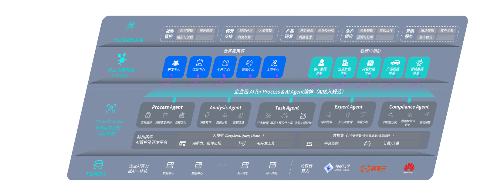 NG大舞台问学智车解决方案是一套基于AI技术的汽车行业智能化系统,,,,覆盖从底层算力到顶层AI应用的全栈方案。。方案由算力层、、、、模型层和应用层组成:算力层,,,方案支持多种一体机配置,,,具备云端灵活部署、、多云适配以及动态优化计算资源的能力;模型层,,NG大舞台问学平台版提供了企业级AI应用一站式构建与管理平台,,,,支持基于后训练强化技术的汽车企业专属模型的训练、、、、评测和运营;应用层,,,NG大舞台问学DeepSeek版提供包括超级员工、、、智能招采、、、智能营销、、智能客服、、AI for BI等一系列解决方案,,可助力汽车行业实现数字化转型,,,让管理更智能、、响应更敏捷。。